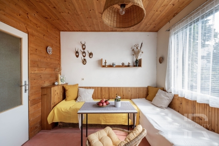 Do chaty je přivedena elektřina, užitková voda, jsou zde také kamna, kterými si budete moct zatopit, kdyby vám na podzim byla zima. Ale díky orientaci chaty byste zimou trpět neměli, protože je orientovaná z velké části jižním směrem. Pozemek, který je pronajímán od obce je rovinatý a jsou na něm vzrostlé keře a ovocné stromy. Pokud máte menší děti, mohou si hrát na pískovišti, případně se jim na zahradu vejde i bazén či trampolína.