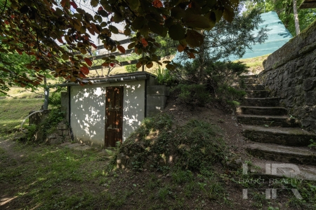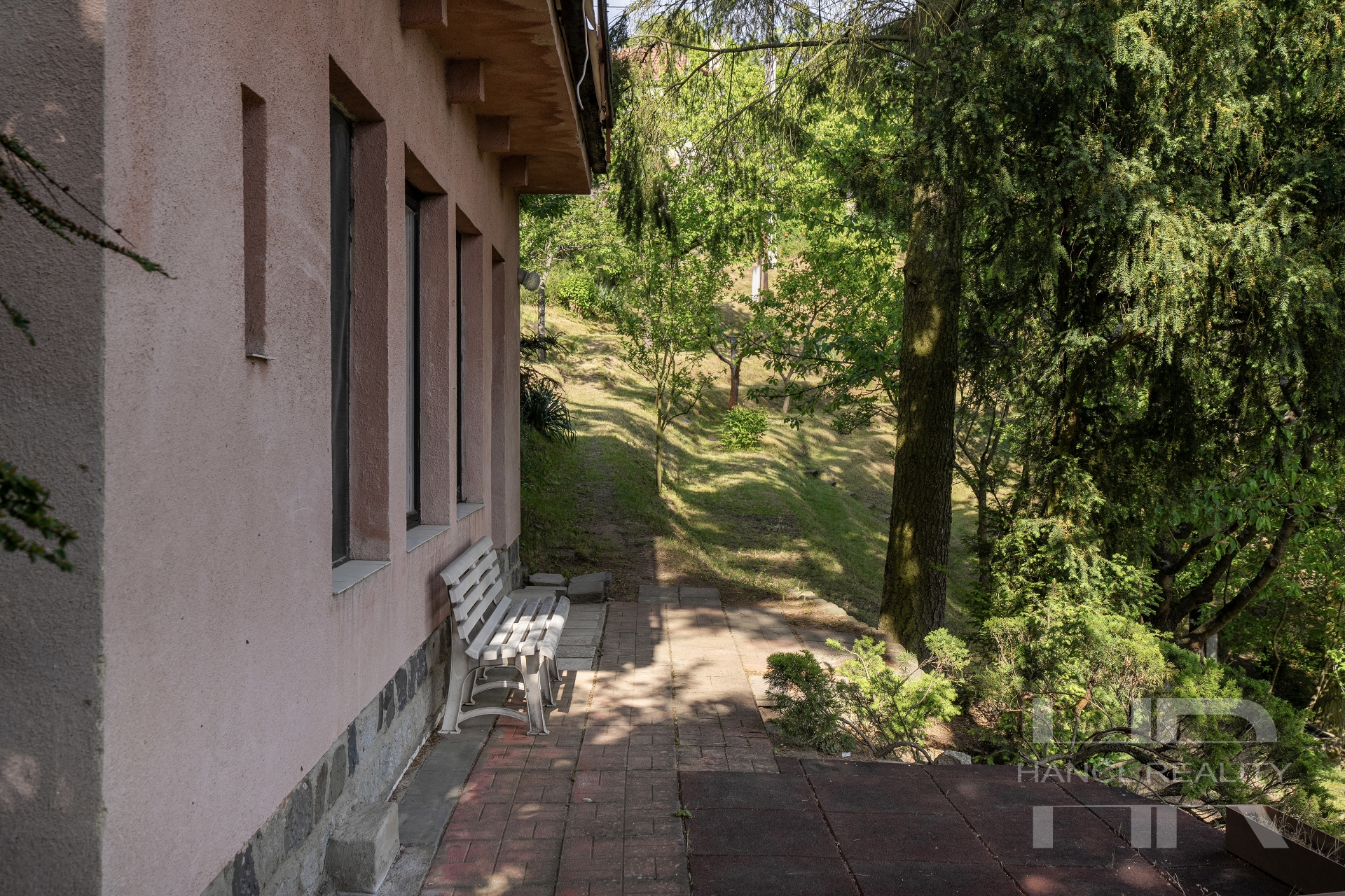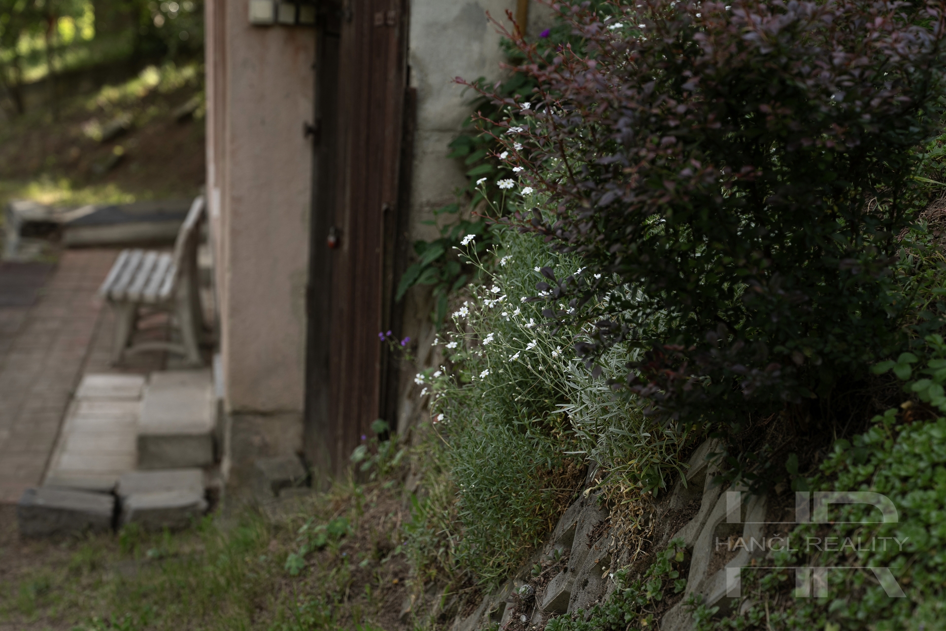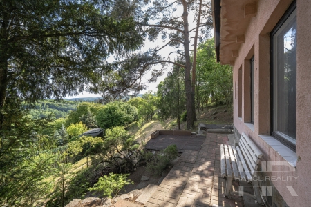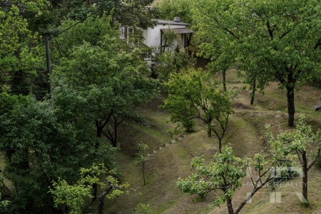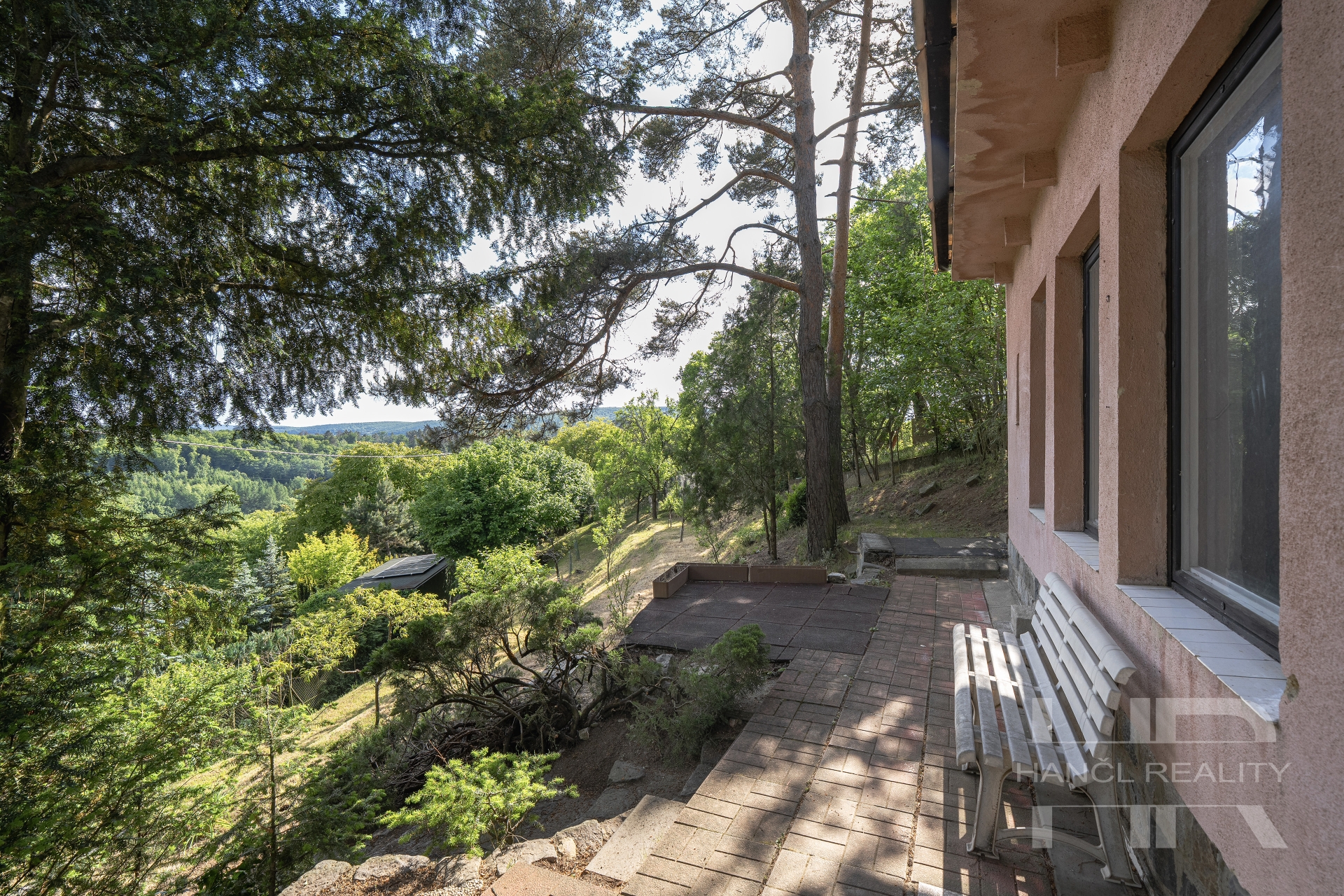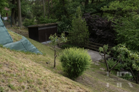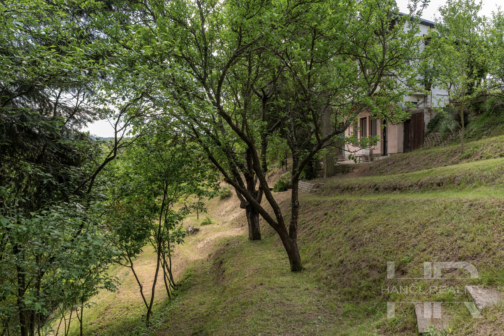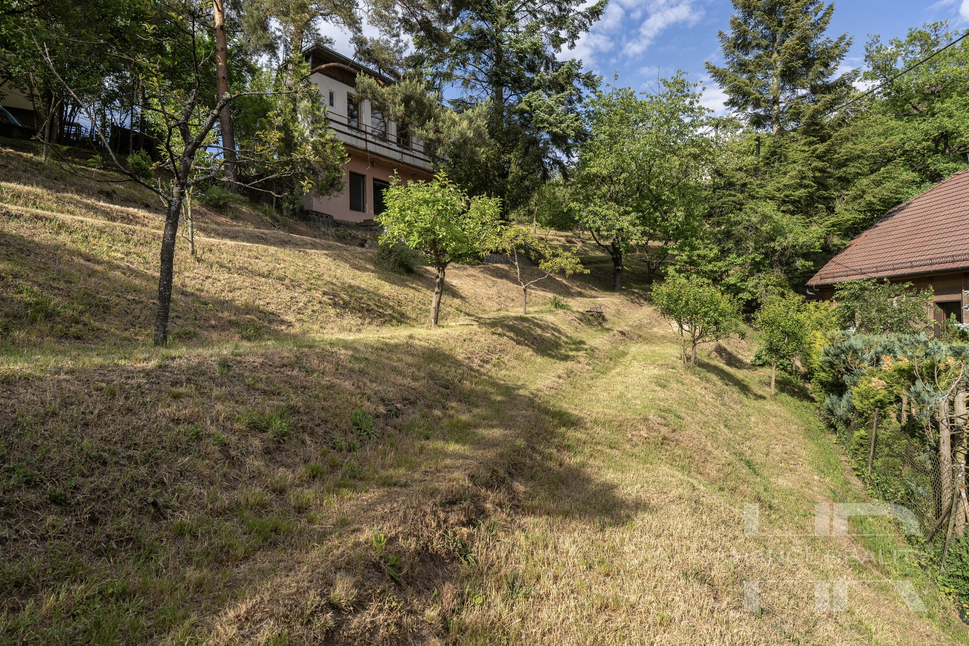 Pozemek je kaskádovitý, s množstvím ovocných a okrasných stromů a keřů. Rovinu tu nehledejte, ale právě díky terénu si tu můžete užít výhledy, které jen tak neomrzí.