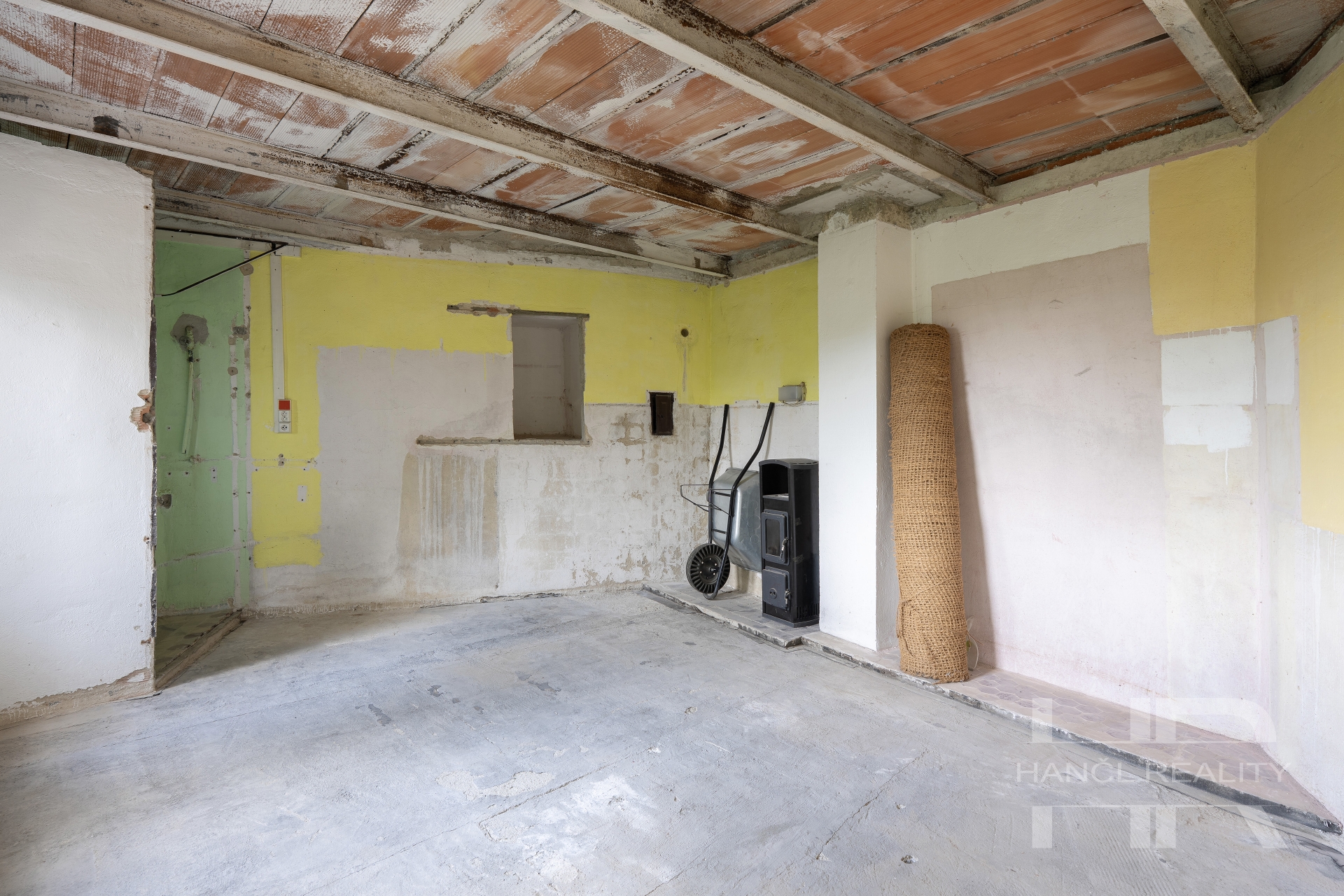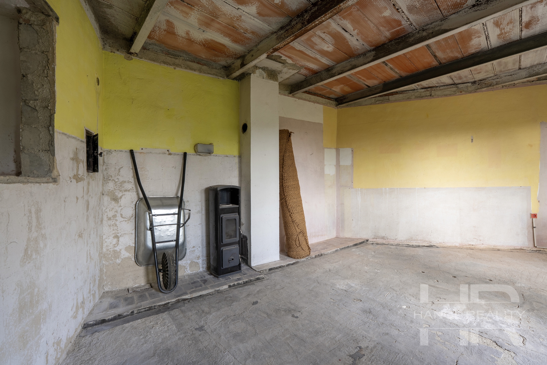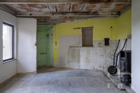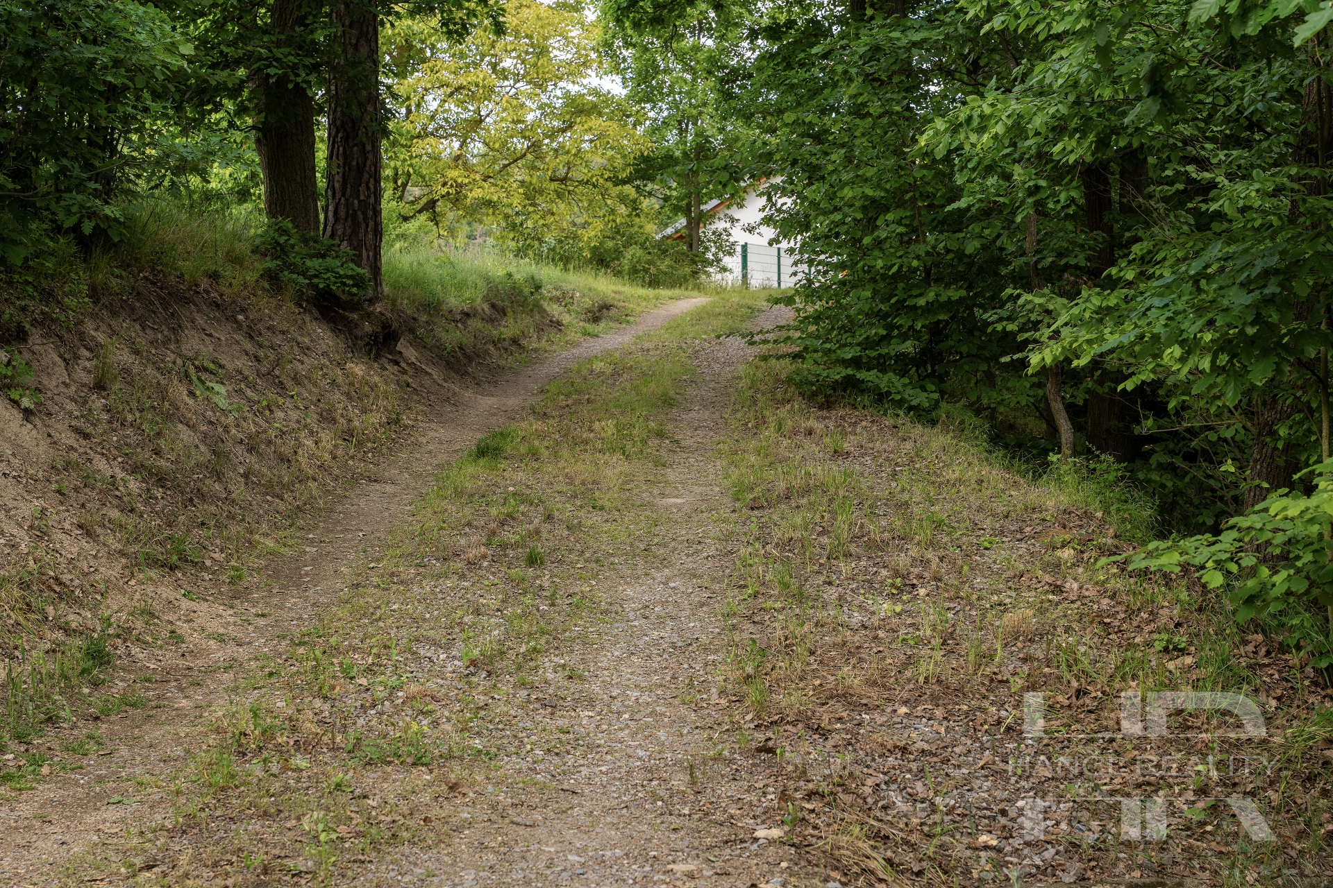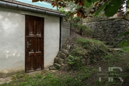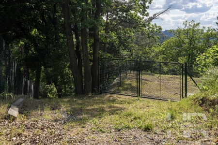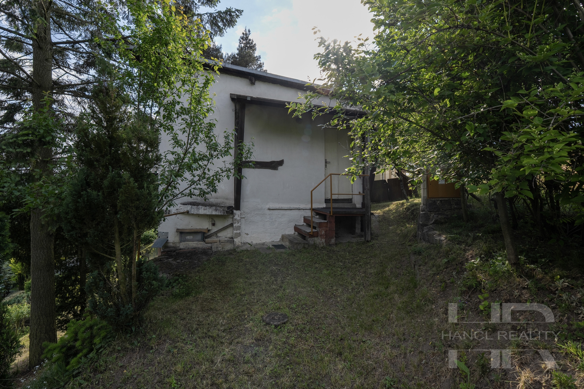 Co se týče přístupové cesty a parkování – možností je několik. Buď na obecním pozemku kousek od hranice parcely, nebo přímo na vlastním pozemku za branou. Počítejte ale s tím, že místo je zde omezené, pokud byste tu chtěli parkovat třeba 5 aut, tak je sem bohužel nevměstnáte. Navíc vzhledem ke sklonu příjezdové cesty musíte počítat s možnými komplikacemi (zejména pokud by napadlo větší množství sněhu), což můžete řešit menší úpravou cesty a jejím zpevněním.Zahrada je díky svému tvaru působivě rozlehlá – dojít z jednoho konce na druhý chvíli trvá. Vstup na pozemek by byl možný z obou jeho konců, v praxi se ale využívá jen jeden. V jeho blízkosti najdete i menší sklípek na potraviny, zejména pro uskladnění ovoce, dále pak ohniště s posezením a něco na způsob dřevníku, či takového skladu zahradního nářadí. Až se tu budete zabydlovat, tak si ale ohniště s posezením určitě uděláte po svém, protože stávající už má to nejlepší za sebou.
